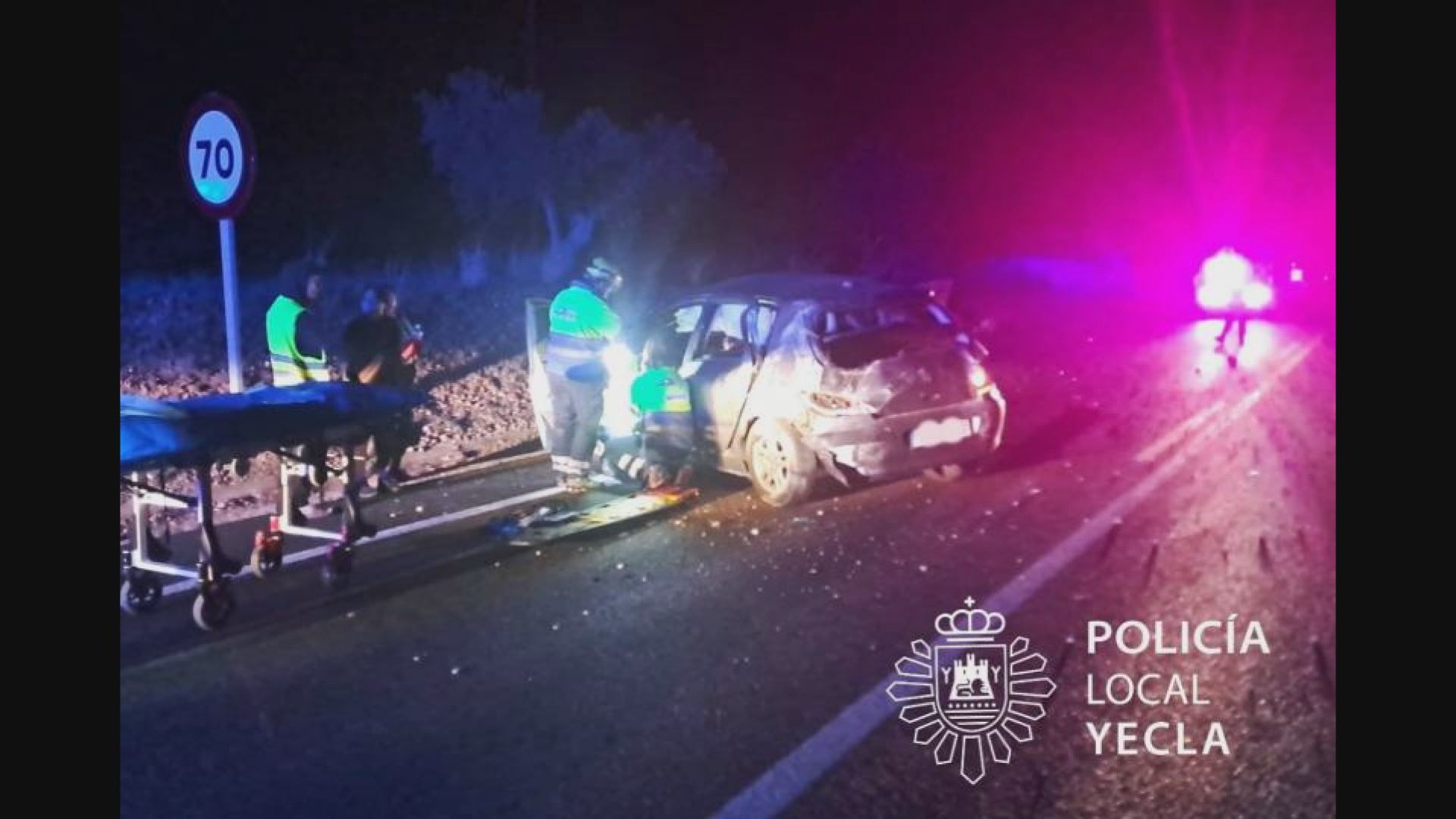 Los servicios de emergencia han tenido que intervenir esta mañana en un aparatoso accidente ocurrido en la carretera N-344, a la altura del kilómetro 84, en el término municipal de Yecla. Una joven de 25 años ha resultado herida tras dar varias vueltas de campana el vehículo que conducía. La conductora ha sido rescatada por los bomberos y trasladada al hospital Virgen del Castillo.