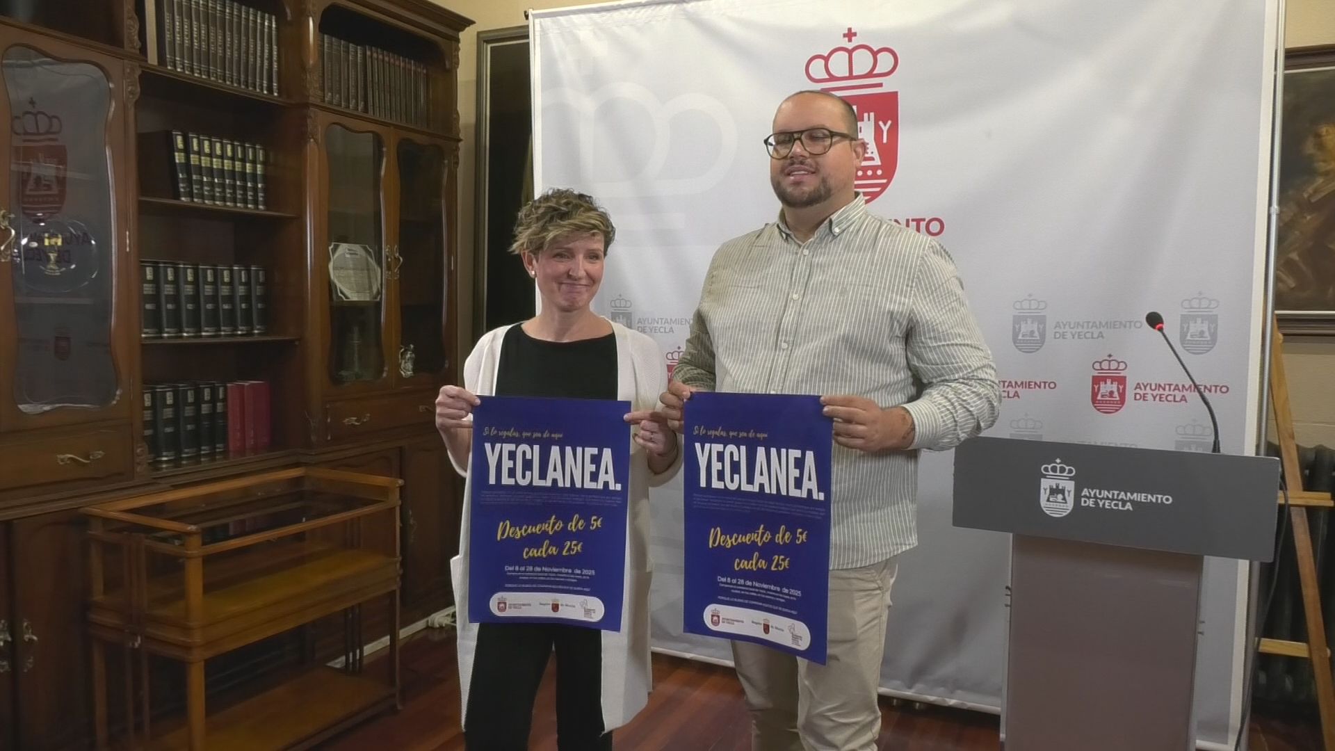La Concejalía de Comercio ha lanzado una nueva edición de la campaña “Yeclanea”, que dará comienzo este sábado 8 de noviembre. La concejal del área, Isabel Pérez, ha señalado que más de un centenar de establecimientos locales se han sumado a esta iniciativa en la que se ofrecen bonos de 5 euros de descuento por cada compra mínima de 25 euros. Con esta propuesta, el Ayuntamiento busca impulsar las compras en Yecla durante las semanas previas a la Navidad y respaldar al comercio de proximidad.