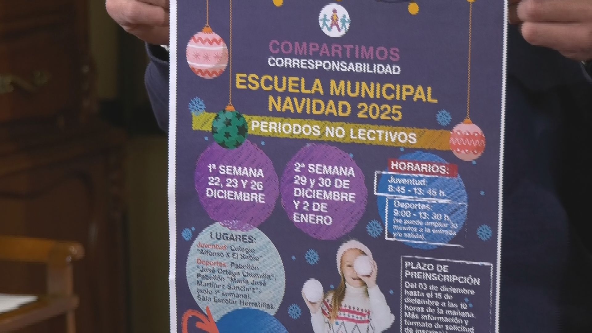 El Ayuntamiento de Yecla pone en marcha un año más las Escuelas Municipales de Navidad, una propuesta dirigida a facilitar la conciliación familiar durante las vacaciones escolares. Del 22 de diciembre al 2 de enero, las concejalías de Juventud y Deportes ofrecerán actividades lúdicas y recreativas para más de 300 niños y niñas de entre 3 y 13 años, incluidas en el Plan Corresponsables. El plazo de preinscripción se abre el próximo 3 de diciembre y se prolongará hasta el día 15, y podrá realizarse de forma online a través de la web municipal, por correo electrónico o de manera presencial en el edificio Bioclimático.