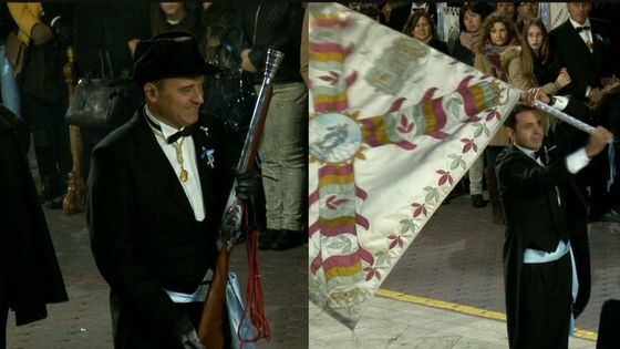 Manuel Lidó Rico, como Capitán Mayordomo del Bastón, y Francisco Javier Romero Candela, como Alférez Mayordomo de la Bandera, han recibido las Insignias de sus predecesores, Francisco Sánchez y Francisco Baello, en un emotivo acto celebrado, tras la Subida, en la Plaza del Concejal Sebastián Pérez.